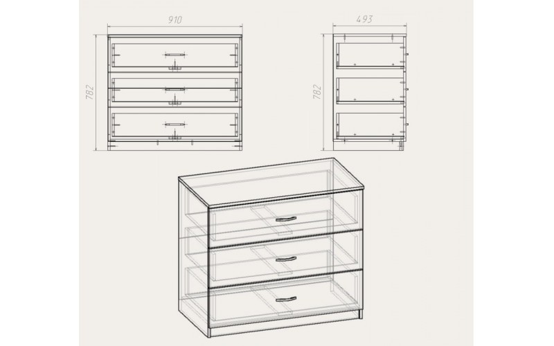 Размер упаковки "Комод 3Б" 917х495х160 мм.